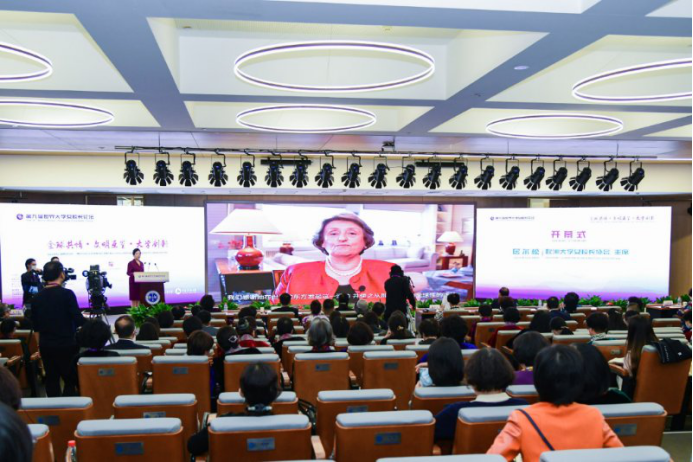 夏杰代表中华全国妇女联合会祝贺论坛成功召开。她指出,本次论坛的主题,聚焦全球共情与合作,契合人类共同发展的愿景。人类是一个命运共同体,全球问题的应对既是各国的责任担当,也是大学追求的共同使命。要在教育中播撒性别平等的种子,才能在未来的人生中结出性别平等的硕果。大学女校长是女性中的佼佼者,是高等教育的引领者,她期待各位女校长的真知灼见,期待大家能够携手同心,培养更多优秀的女性人才,为进一步推动性别平等和妇女全面发展作出贡献。她表示相信女校长们的精彩对话,将使古都焕发出更加绚丽的教育之光、智慧之光、文明之光,更加有力推动各个国家和地区的交流互鉴与人类文明。