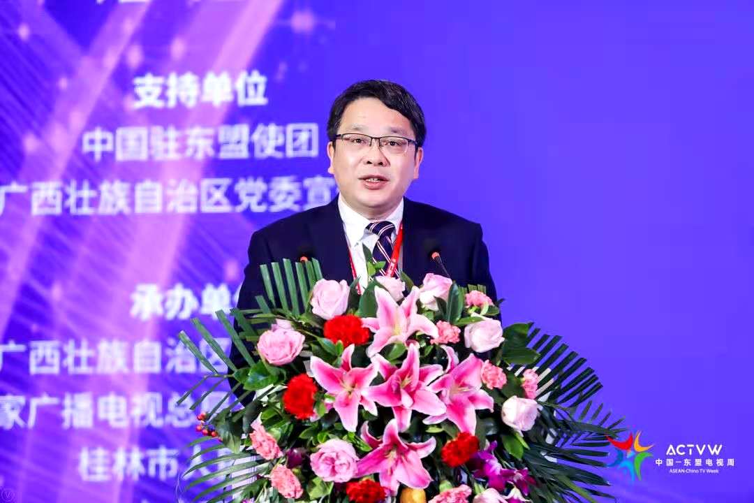 (通讯员 姬德强)11月24日,由中国国家广播电视总局、广西壮族自治区人民政府主办,广西壮族自治区广播电视局、国家广播电视总局发展研究中心、桂林市人民政府、中广互联等承办的第二届中国—东盟电视周系列活动之一——中国—东盟电视周视听传播峰会在广西桂林市举办。国家广播电视总局副局长孟冬、广西壮族自治区副主席周成方、文莱驻华大使拉赫玛尼等中国与东盟国家有关政府部门领导、研究机构专家学者、大型媒体平台领军人物等百余位重要嘉宾出席本次峰会。我校副校长张树庭出席主论坛并作主题发言。