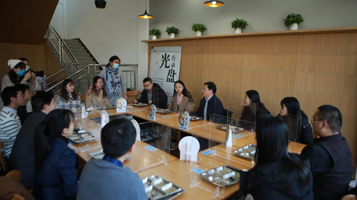 (通讯员 齐雨菡 王琳)12月4日中午,我校光盘行动之“寻找餐桌上的榜样”第四期活动在北苑餐厅举办,校党委副书记姜绪范,党委副书记、纪委书记王达品出席活动,与教师代表、学生代表亲切交流,共进思想午餐。