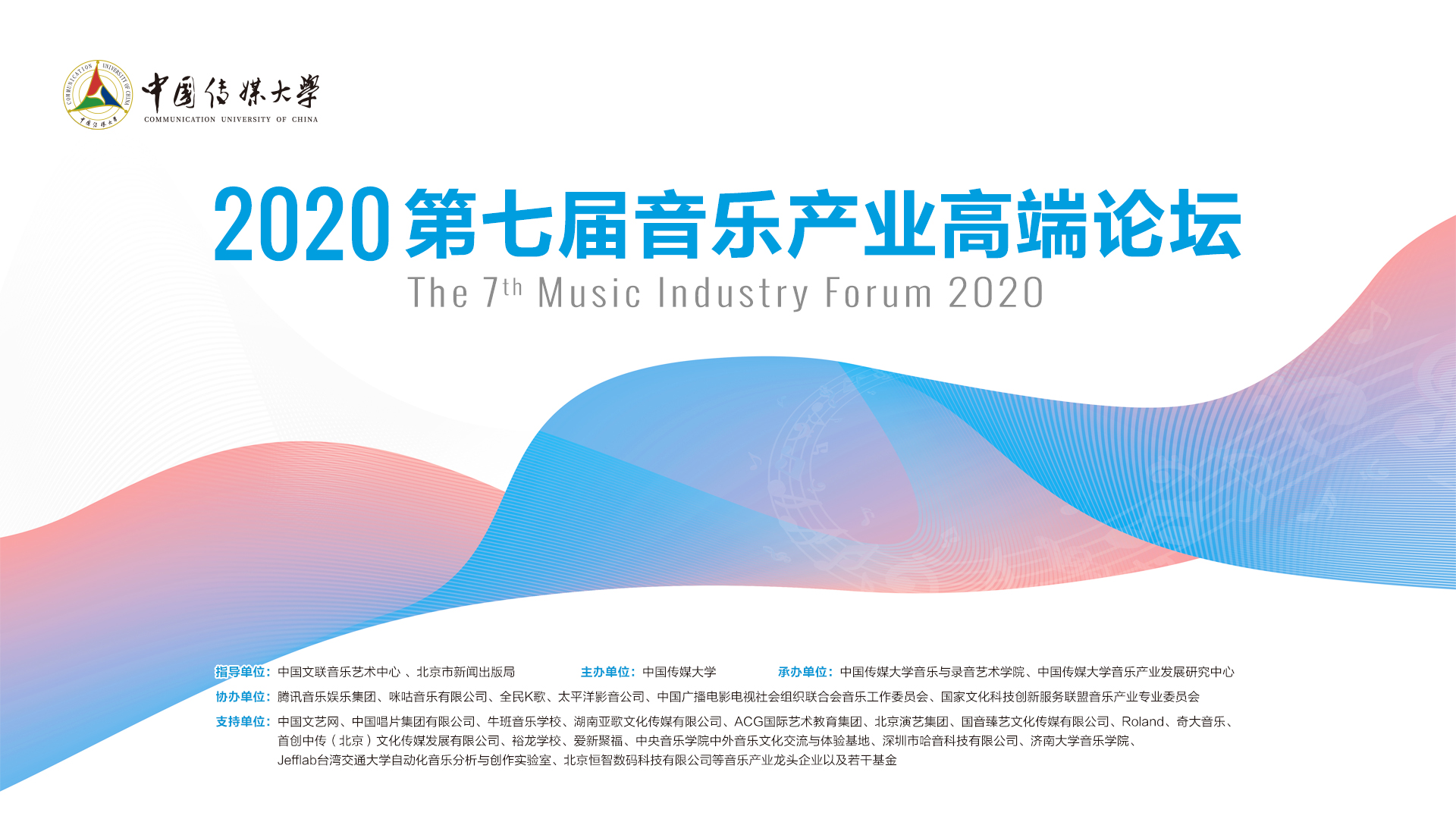 第七届音乐产业高端论坛综合了音乐展览、主题论坛、报告发布、“双创”大赛、学术论坛、在线大师课等多个板块,采取了线上线下结合的表现方式,涉及内容创作创意、技术科技创新、学术成果展示与产学对话等。2020年突如其来的新冠疫情为音乐产业的高速发展带来冲击,但也带来寻求高质量发展路径的新机遇,未来仍需政、产、学、研各界多方协调联动,共赢发展,以促进优秀文化传承创新,推动中国音乐产业驶入良性发展的快速车道。
