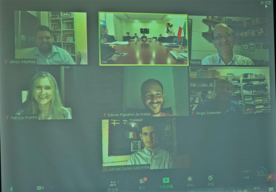 段鹏副校长首先致辞。他表示,巴西南大河州联邦大学是我校在南美重要的合作伙伴,近十年来孔子学院建设、我校葡萄牙语专业学生的语言实践、两校共同策划的广告联展等活动,都是双方合作结出的丰硕成果。同时他指出,共建的孔子学院在今年疫情中成功地克服重重困难,开启网络教学、举办线上活动,获得了各方的高度认可,两校的合作也得到使馆的赞赏,他希望优秀的中方院长和汉语教师能够及早被派出,在新一年的工作中再创佳绩。
