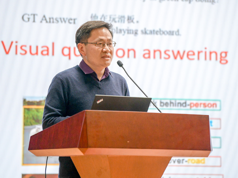 王亮副主任作了题为《面向复杂视觉任务的多模态深度学习》的学术报告,介绍了科研团队在多模态深度学习领域近几年的研究成果,并对面向复杂视觉任务的多模态深度学习的未来发展趋势进行了展望。