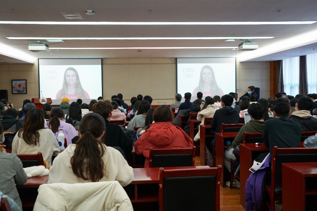 受疫情影响,奥林匹克转播服务公司(OBS)的BTP项目负责人Luana Florentino和Jim Owens无法亲临现场,他们通过视频向师生们介绍了BTP项目的背景、性质、任务分工及工作时间,也向同学们表达了对此次国际合作的期待。