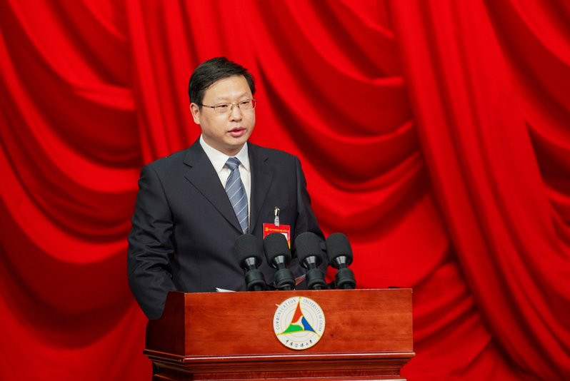 按照疫情防控要求,大会以线下线上方式举行。党委书记、校长廖祥忠,党委副书记姜绪范,党委副书记、纪委书记王达品,副校长刘守训、李新军、张树庭、段鹏及主席团其他成员(按姓氏笔画排序)丁俊杰、王志、王晖、王琳、王晓红、王晓丽、叶菁、刘灵、李伟、李众、李增瑞、杨懿、张海、张绍华、张根兴、陆佳怡、庞亮、郑维林、战琦、徐红梅、郭婧娜、董关鹏、程爱晶、曾祥敏、蓝旭在主席台就坐。