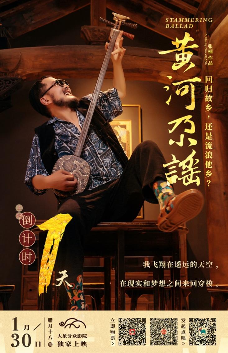 该片将于2021年1月30日在大象分众影院上映,打开“淘票票”或者“猫眼”APP,输入“黄河尕谣”,或扫描海报二维码,即可预订电影票。
