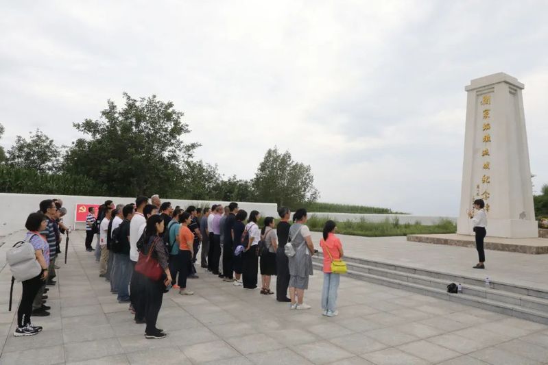 迈步登上关家垴战斗遗址,看着沟壑纵横的地形,望着远处绵延不断的山脉,听着现场教师的“勇于亮剑 不怕牺牲”主题党课,大家仿佛穿越历史,重新回到了那个烽火硝烟的悲壮场景:一批八路军战士倒下,又一批战士继续向前冲锋,八路军用血肉之躯铺就前进的道路,用殷红的血液将脚下的黄土地染红……只是为了一个信念——夺取胜利,将侵略者赶出家园!