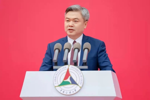 同学们,从今天起,你们将在中传书写人生新的篇章。你们将在这里领悟“立德、敬业、博学、竞先”的中传校训,传承“忠诚、自信、包容、竞先”的中传基因。