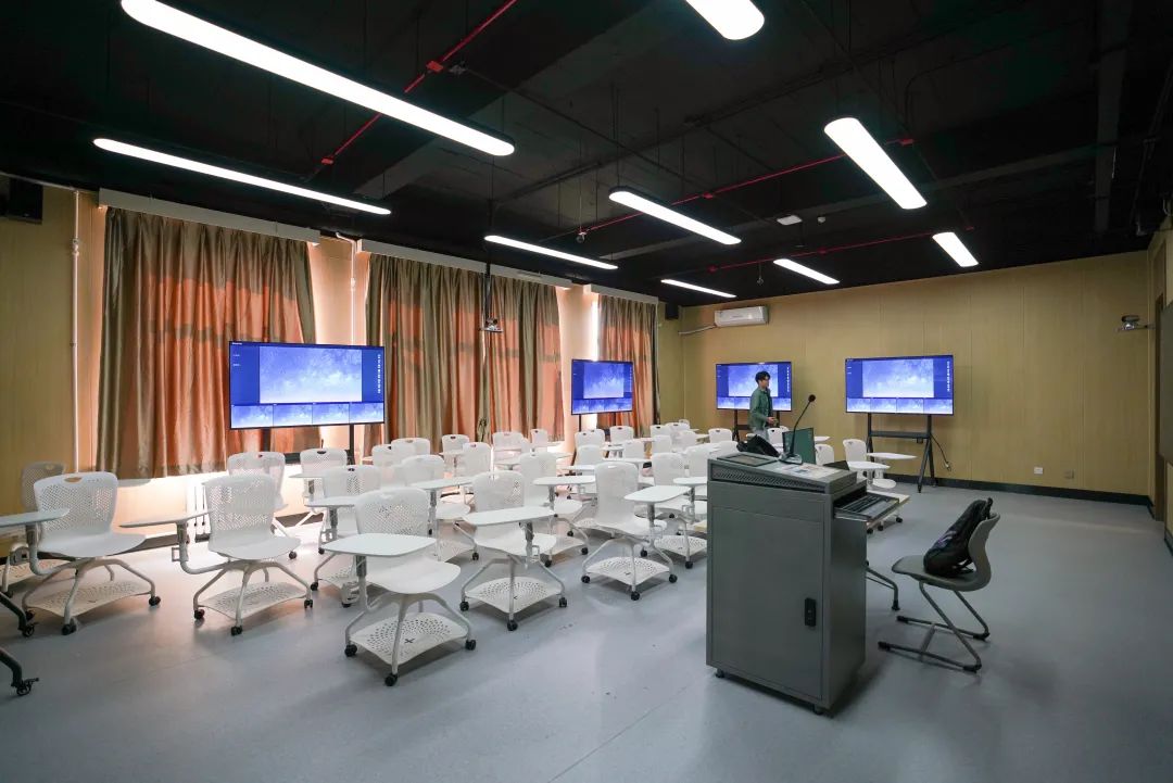 除了基础智慧教室,在充分考虑不同教学需求的基础上,此次改造还新增了立足传媒专业特色的多场景智慧教室。包括6间创意交流智慧教室、4间远程互动智慧教室、2间智能录播教室、2间多屏研讨智慧教室、2间创意思维教室和1间表演特色教室。