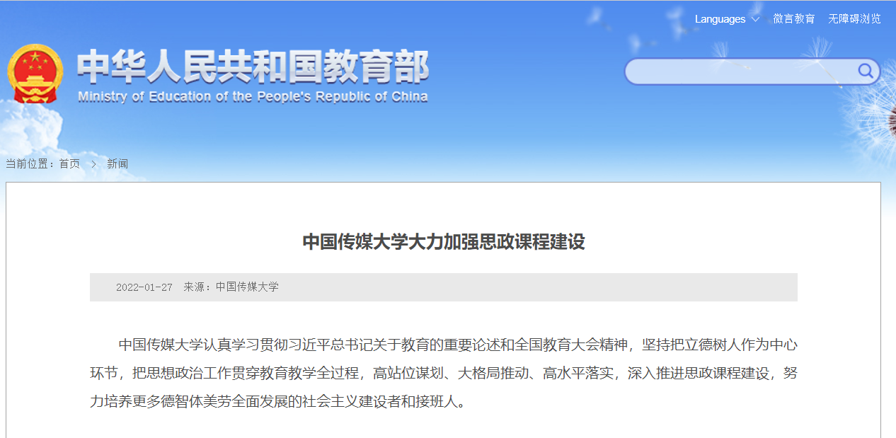 三年来,教育部网站两次登载了我校大力加强思政课建设的思路举措,新华社、中央广播电视总台、中国教育电视台、中国教育报、新京报等多家媒体多次报道了我校思政课改革创新经验成果。