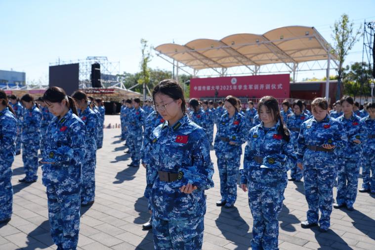 9月18日上午10时,军训基地响起防空警报,全体承训教官、带训教师与参训学生面向国旗肃立默哀,缅怀在抗日战争中牺牲的先烈。当晚,全体学生在训练场重温纪念中国人民抗日战争暨世界反法西斯战争胜利八十周年大会的盛况,感受历史长河中那段烽火岁月的沉重与悲壮,体悟无数先烈用热血与生命铸就的民族脊梁。
