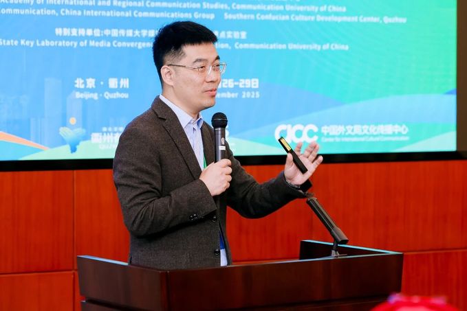 中央广播电视总台CGTN评论部主编、制片人、评论员毕建录在题为《当媒体遇见现代化:如何用故事打破“西方叙事框架”》的发言中,对比了中西方在现代化发展路径与价值取向上的差异,并以CGTN《陆游记》等节目为例,阐释中国媒体如何践行“人民至上”的话语体系,用动人故事引发海外受众共鸣。