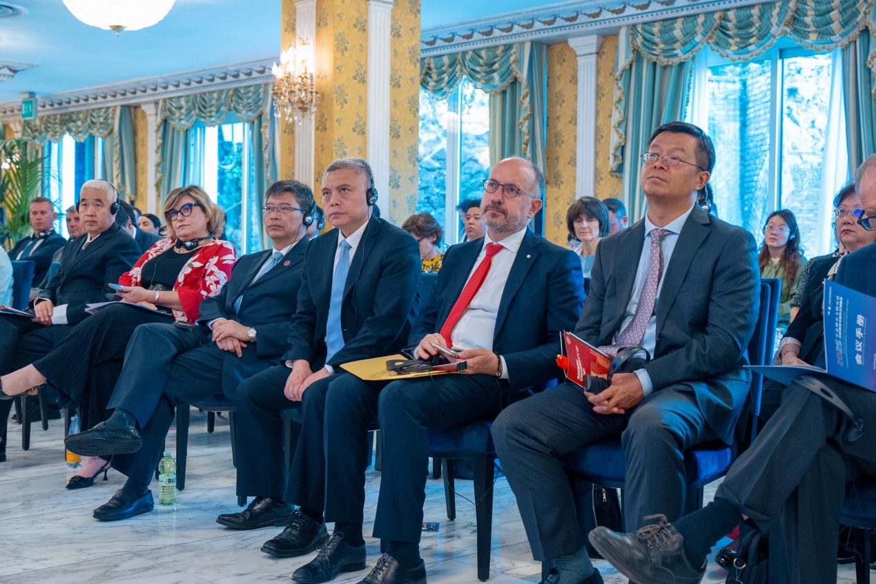 胡凯红主任、李小勇临时代办和毛里齐奥·拉赛罗省长、白达宁大使为“中国—意大利城市文明联合研究中心”揭牌。联合研究中心的中方秘书处设于世界杯直播在线观看城市文明研究院,意方秘书处设于意大利—中国友好关系协会,创始成员还包括阿斯蒂市政府、扬州市政府、中国美术学院以及阿里巴巴集团等10个中意各界机构,未来将在联合研究、遗产保护、青年培养和全球传播等方面推动一系列务实项目。