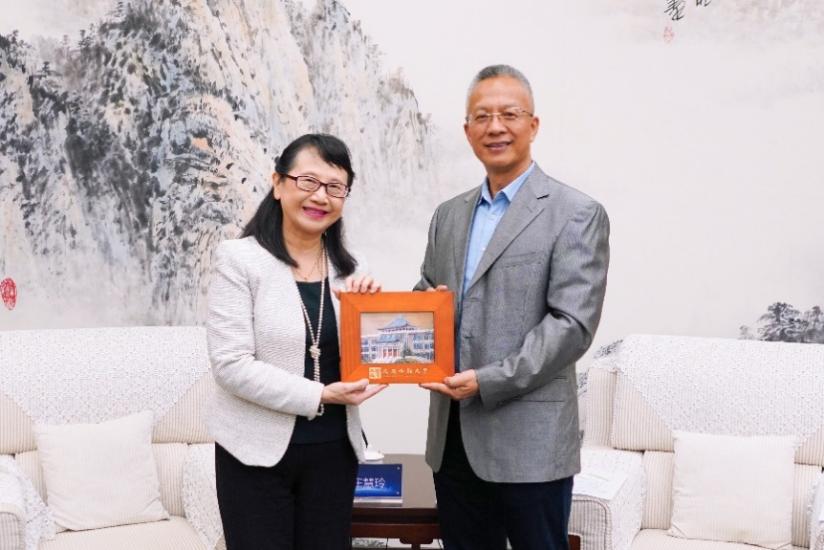 (通讯员 陈佼怡)10月17日,台湾文藻外语大学校长庄慧玲一行来校访问,副校长柴剑平与代表团就重启两校学生交换项目与深化合作等议题进行了交流。
