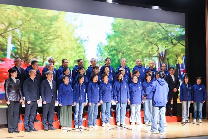 庆祝大会最后,教授合唱团带来歌曲《年轻的朋友来相会》,全体校领导与教授合唱团同唱中传校歌《校园里有一排年轻的白杨》,并与寿星代表、先进党组织代表、先进个人代表合影。