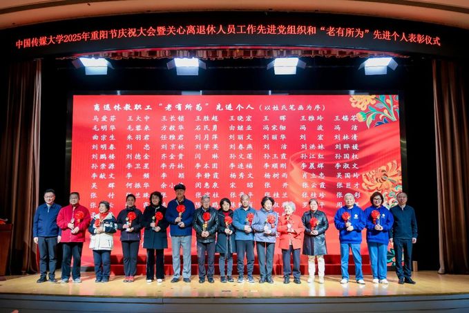 张绍华代表学校党委向全校离退休教职工致以节日的问候和崇高的敬意,向所有寿星祝寿,并向受到表彰的先进党组织和先进个人表示热烈祝贺。他表示,学校始终把老同志的幸福感放在心上,持续把“暖民心”服务做实做细。今年首次开展的“老有所为”专项评选中,108位老同志以多种形式生动诠释了“离岗不离党、退休不褪色”的忠诚品格。希望青年一代以老前辈为榜样,让“银发智慧”与“青春力量”交相辉映,共同谱写“强国建设,中传必须有为”的崭新篇章!