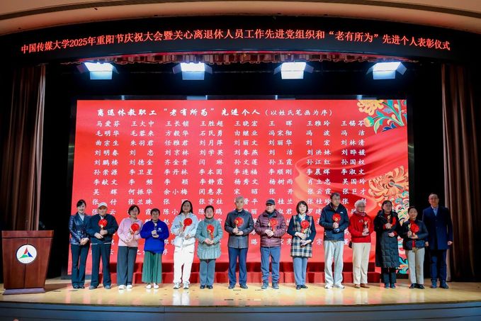 新闻学院党委、电视学院党委、播音主持艺术学院党委、信息与通信工程学院党委、计算机与网络空间安全学院党委、文化产业管理学院党委、马克思主义学院党委、后勤党委共8个基层党组织,以及在服务学校基层党建、管理服务、教学科研等领域践行“老有所为”先进个人依次上台接受荣誉。