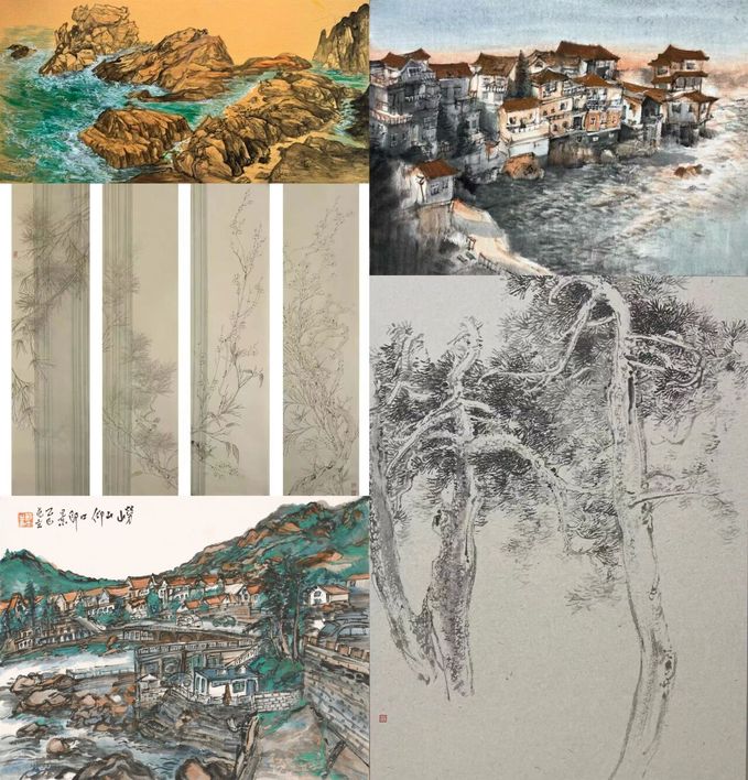 山水花鸟山东小组赴青岛崂山及周边村落开展写生实践。师生依托崂山丰富的自然与人文资源,深入真山真水,培养对当地风土民情的感受力与创作能力。写生采风作为中国画博士阶段的必要课程,旨在培养兼具理论素养与创作实践能力的研究者。此次实践不仅使学生完成了一批高质量的写生作品,更通过现场观察、教师示范与集中评讲,帮助学生将纷繁的自然景观转换为精炼的笔墨语言,为后续的课题研究与专题创作积累了丰富的素材与扎实的生活体验。