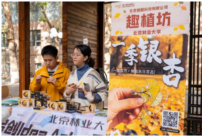 活动现场,人流如织、热闹非凡。在科技领域,中国科学院大学GEEKROS团队带来的“孙悟空”站立式机器人与“机器狗”,直观呈现了其在人机交互方向的最新探索;文化传承领域,清华大学的“3D打印复原文创饰品”与北京外国语大学的“此情瓷景”项目,让非遗文化焕发全新活力,吸引了大量师生驻足交流;互动体验领域,中国科学院大学的“博士农场”项目依托农用机器人开展科学种植,并将自产山楂制成特色食品,获得师生广泛好评。