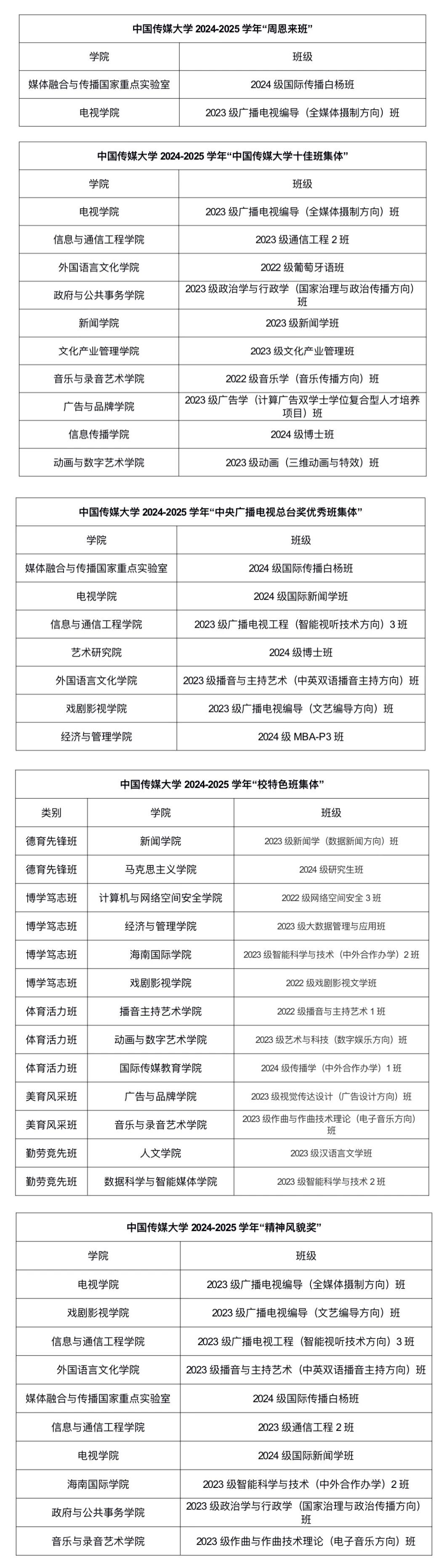 经现场评审,共有2个班级获评“周恩来班”,10个班级获评“世界杯直播在线观看十佳班集体”,7个班级获评“中央广播电视总台奖优秀班集体”,13个班级获评“校特色班集体”单项奖,10个班级获评“精神风貌奖”。