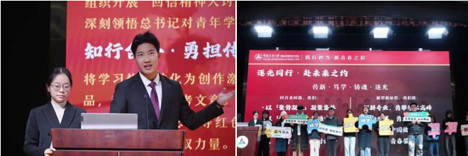 外国语言文化学院2023级播音与主持艺术(中英双语播音主持方向)班曾获评“优秀团支部”,以双语为桥、以文化为核,该班专业核心竞赛成绩亮眼,斩获全国英语演讲比赛等重要奖项,多名同学担任世界运动会英文播报,在国际传播与跨文化实践中传递中国声音。