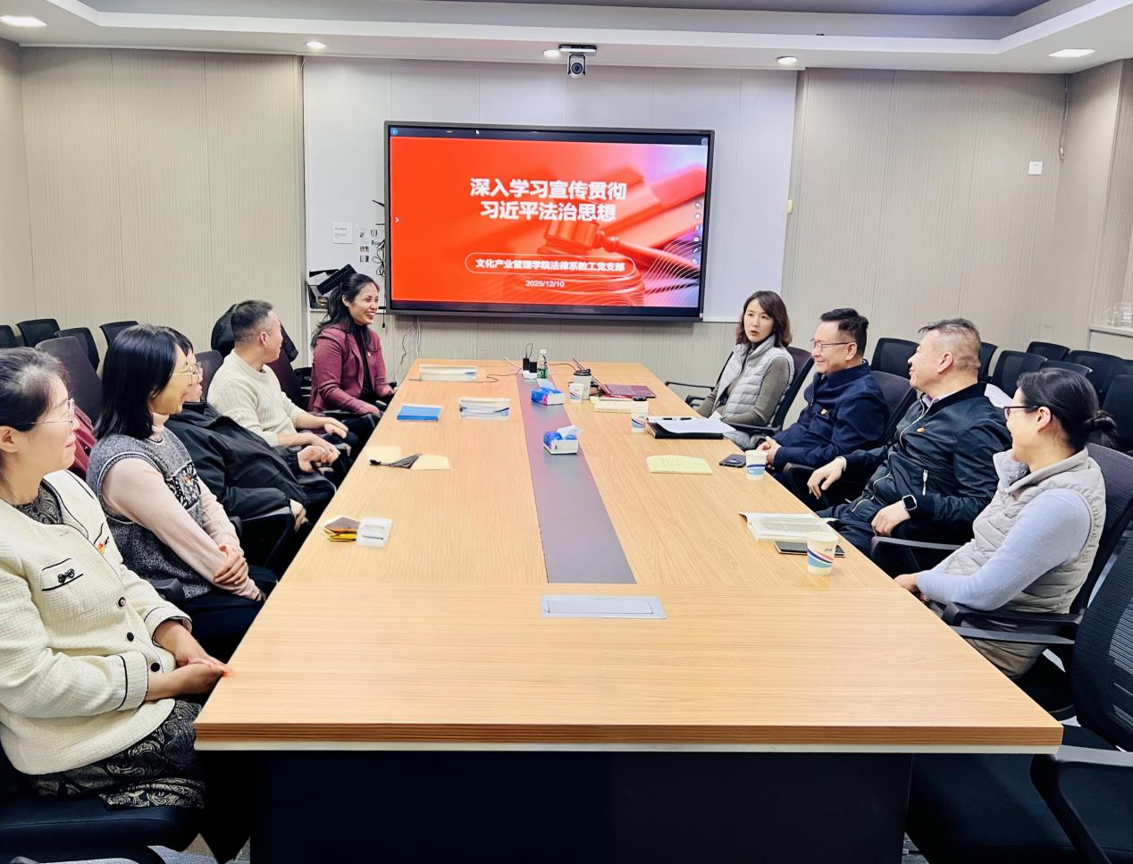 (通讯员 程科 摄影 叶怀阳 胥迪)12月10日下午,世界杯直播在线观看文化产业管理学院法律系教工党支部举行集体学习会,围绕“深入学习宣传贯彻习近平法治思想”主题,结合中央全面依法治国工作会议精神与新近出版的《习近平法治思想学习纲要(2025版)》展开深入研讨。党委常委、副校长李新军出席会议并参与交流。文化产业管理学院院长张洪生列席会议,法律系主任郑宁教授主持会议。