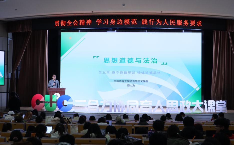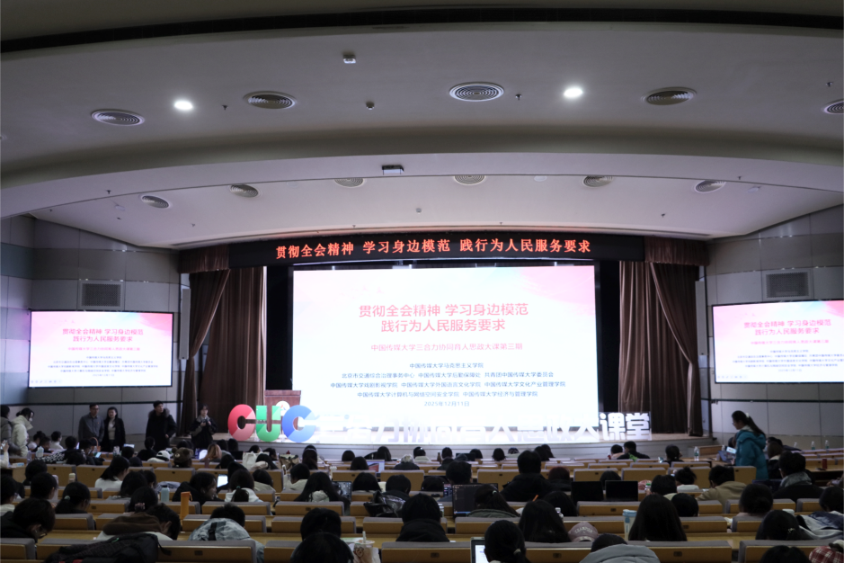 此次课程是中传“三合力”协同育人系列思政大课第三期。该机制通过思政课程、课程思政、学工系统三支教师队伍联动,联动后勤保障处、校团委及多学院力量,以分类教学模式推进思政课教学效果提升,构建全校共建共享的“大思政”育人格局。